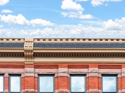 Mills + Schnoering Architects (M+Sa) conducted a high reach survey to review and evaluate the exterior conditions of the building and prepared an exterior preservation plan. Restoration followed, and incorporated brick and stone repairs and repointing, sheet metal restoration, and exterior repainting.