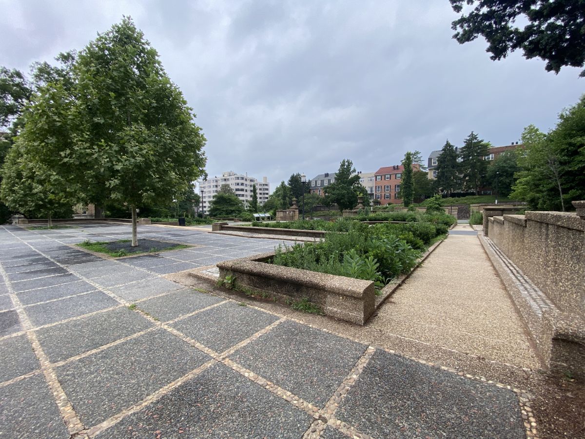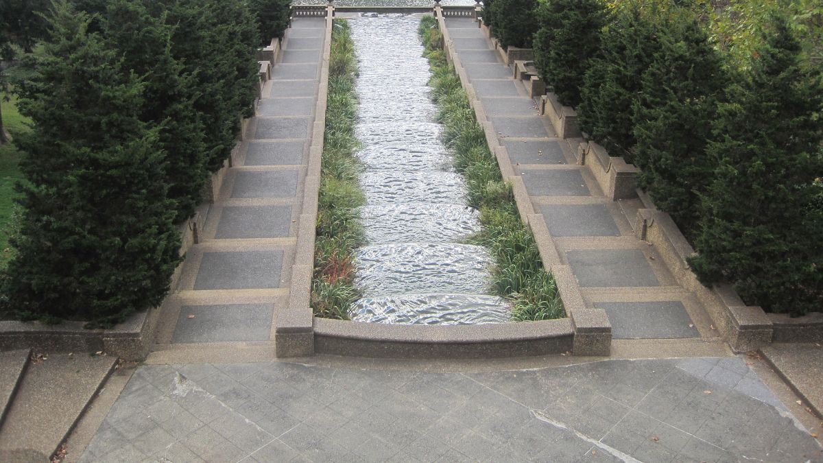The land for Meridian Hill Park, a National Historic Landmark, was acquired by the Federal government in 1912. The Park took a number of years to complete, with an upper mall opening to the public in 1923 and the remainder of the Park opening in 1936. The upper mall is linked to a lower plaza by the Park’s centerpiece, a cascading fountain with thirteen basins culminating in a reflecting pool. The Park is further defined by its architectural elements (which include retaining walls, stairs, walks, benches, and a variety of Classical ornamental features) created by John Joseph Earley using a highly refined form of exposed aggregate concrete in a variety of colors.