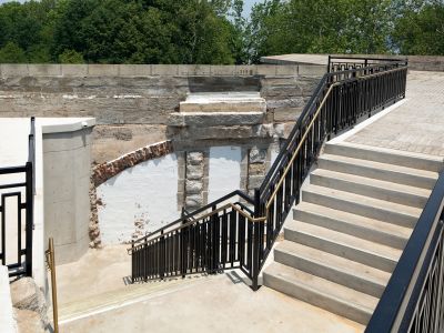 In order to improve egress capacity, a second exterior stair of granite was also added to the east of the Pedestal to match the existing monumental stair to the west. Two new stairs from the Terreplein to grade provide the last link in the egress route for visitors, exposing buried archaeological elements. These interventions have made the structure more welcoming, safe, and accessible while preserving the significant historic features of this World Heritage Site.