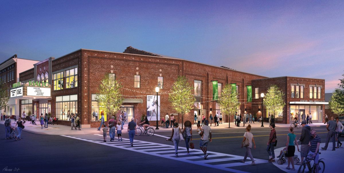 Local recognition of the fact that a repurposed Rialto has the potential to play an important local and regional role in stimulating interest in and exposure to the arts while serving as a critical economic engine for the town led to a vision for a new community-focused destination known as The Rialto Center for Creativity. Mills + Schnoering Architects, LLC (M+Sa) was hired to work with The Center to develop a plan that would bring life back to the building, reactivate the street and sidewalk, and create a welcoming beacon for all.